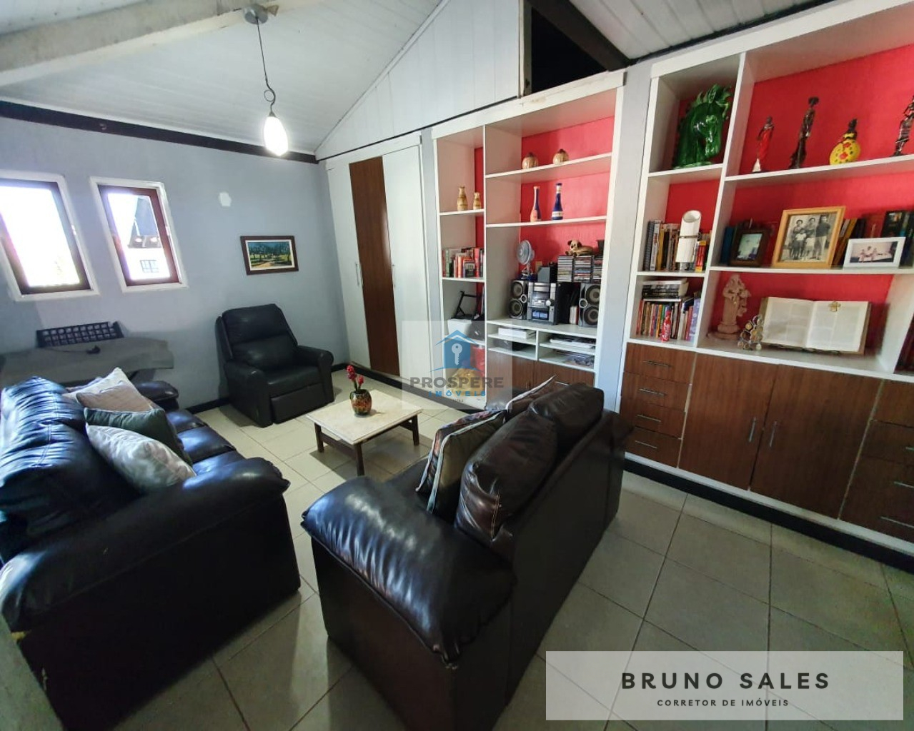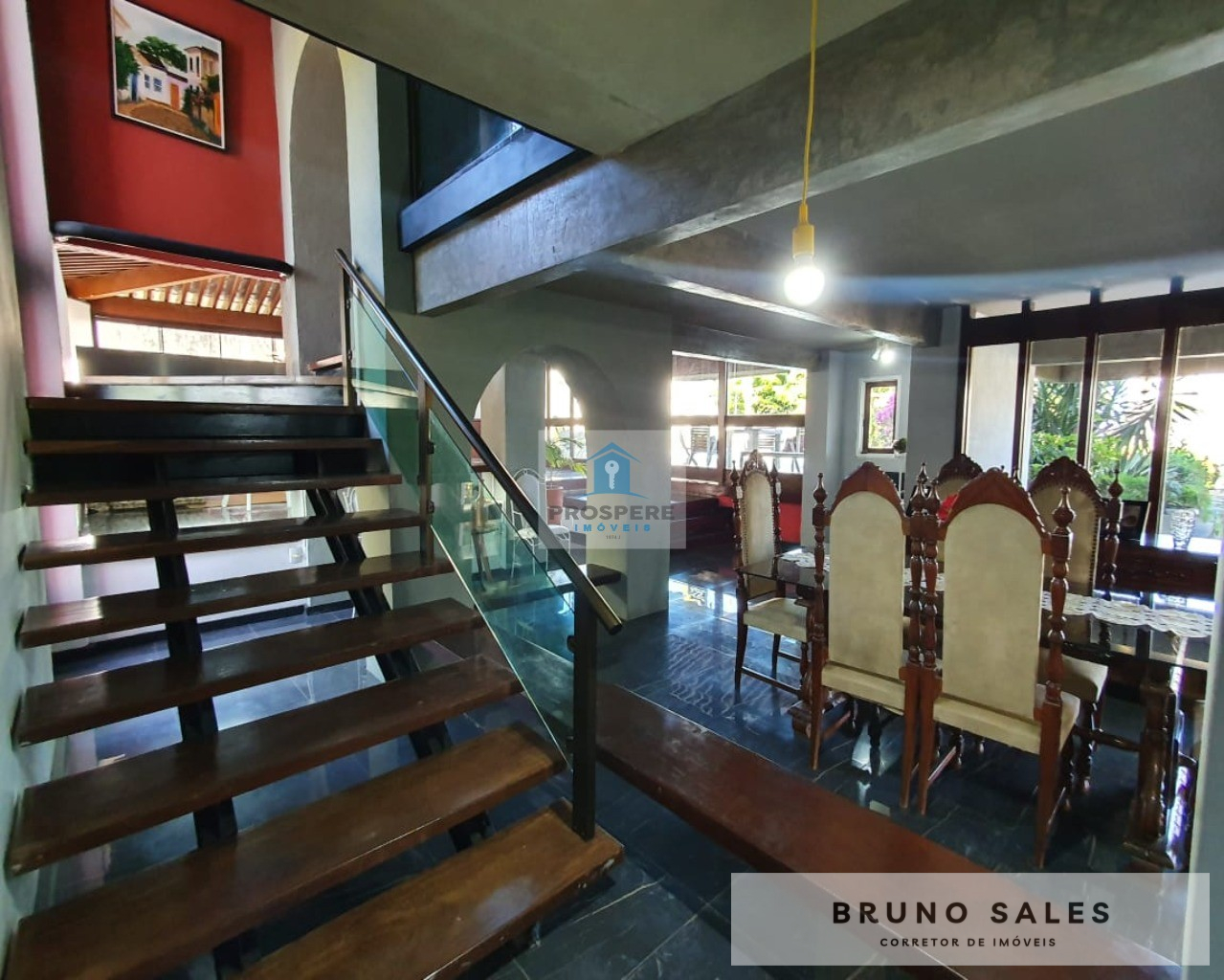 Casa de luxo com 4 quartos, sendo 2 suítes, living dividido em 3 ambientes ( estar, jantar e tv), ampla varanda que segue toda a fachada da casa, 6 vagas de garagem, 2 quartos para funcionário, 2 tanques que somam 17 mil litros e uma incrível extensão de área verde.